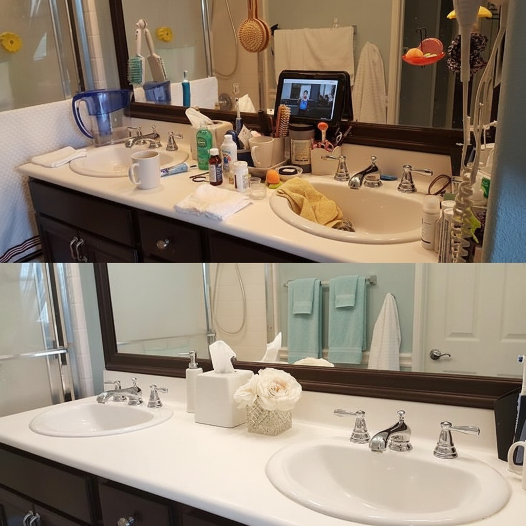 Sarah used the 20‑Day Blueprint to turn her “cluttered chaos” bathroom into a calm, spa‑like retreat.