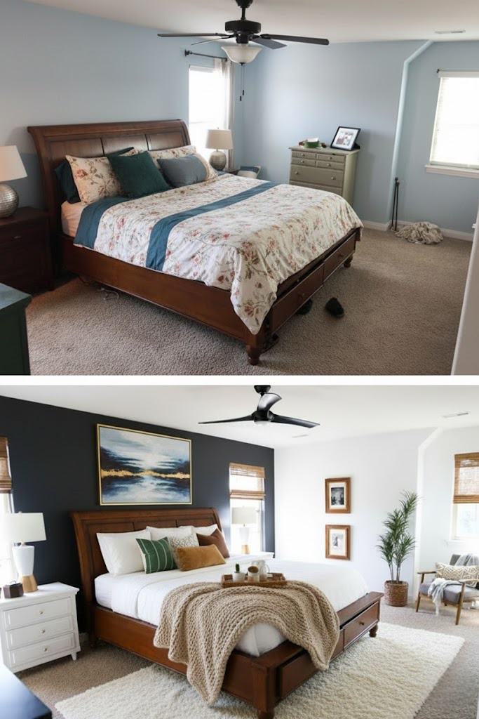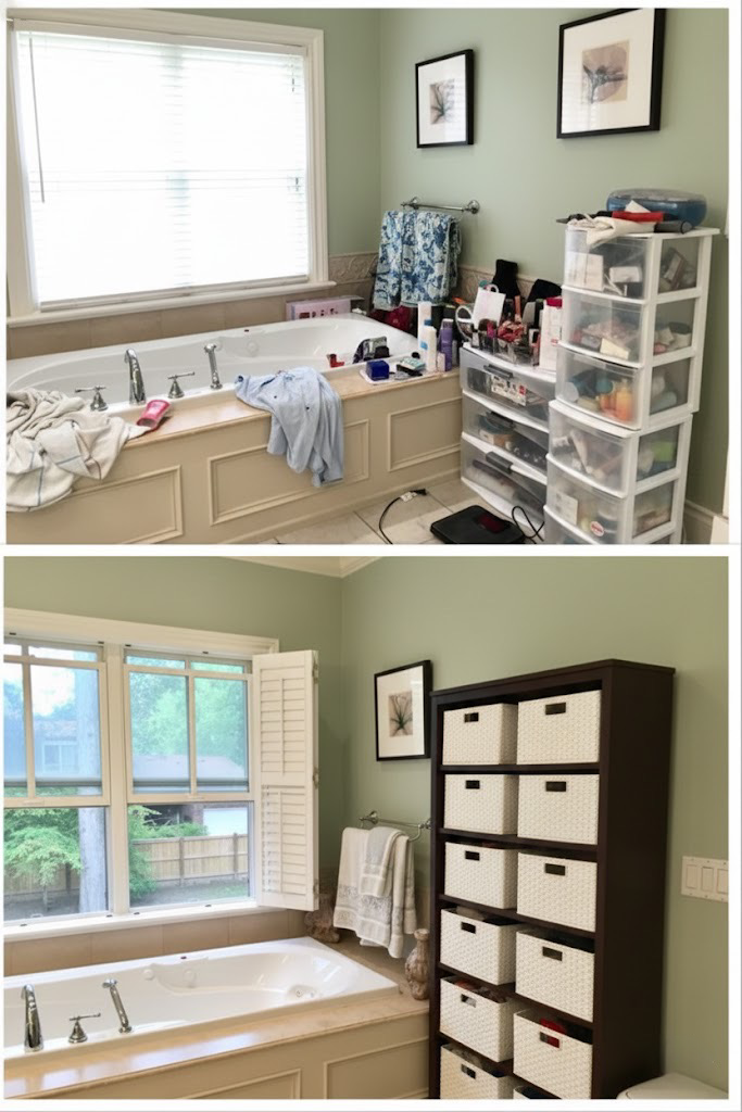 By Day 10, she added soft touches: fresh towels, simple décor, and functional storage, making the space feel inviting and serene.