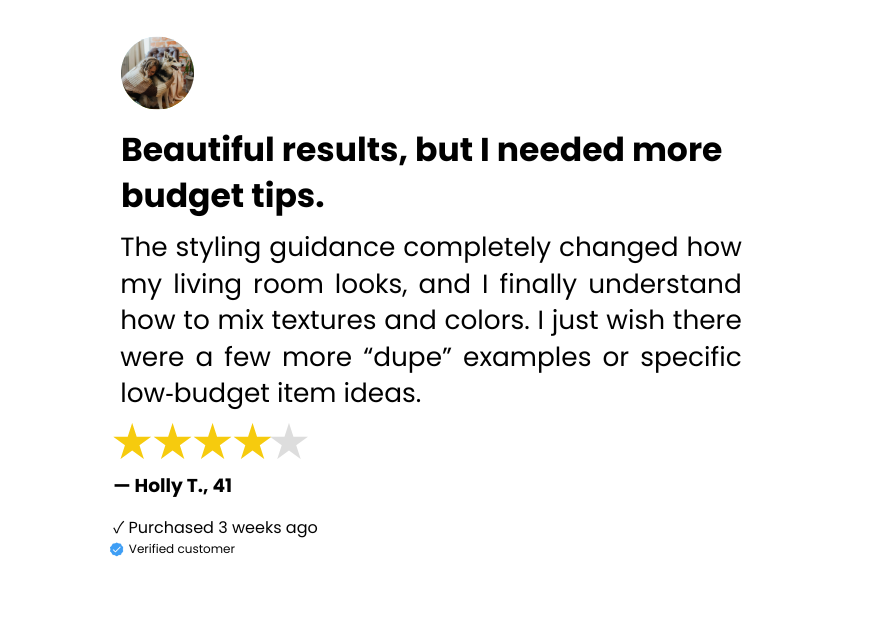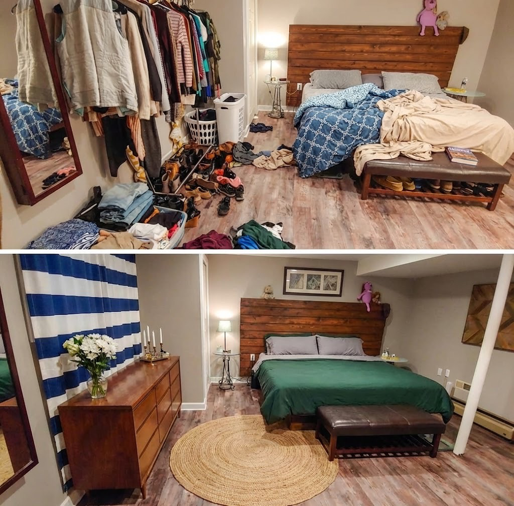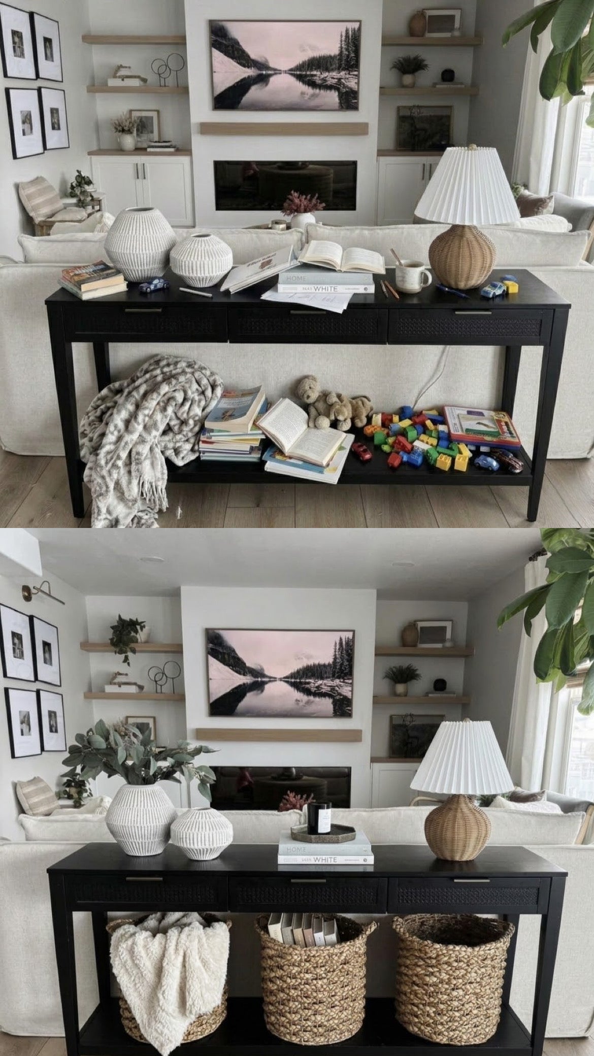 By Day 10, she’d styled the space with softer colors, lighting, and the Rule of Three on her coffee table, just three beautiful items instead of clutter.