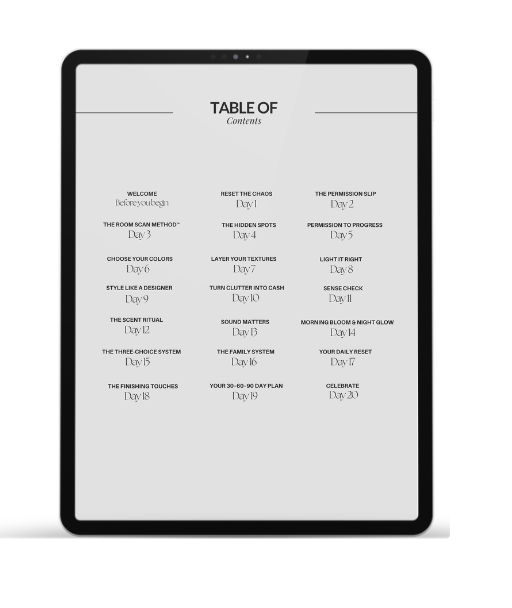 By following the 20-Day Home Reset, you’ll clear the visual chaos, improve the feel of your space, and build small habits that help the calm actually last.