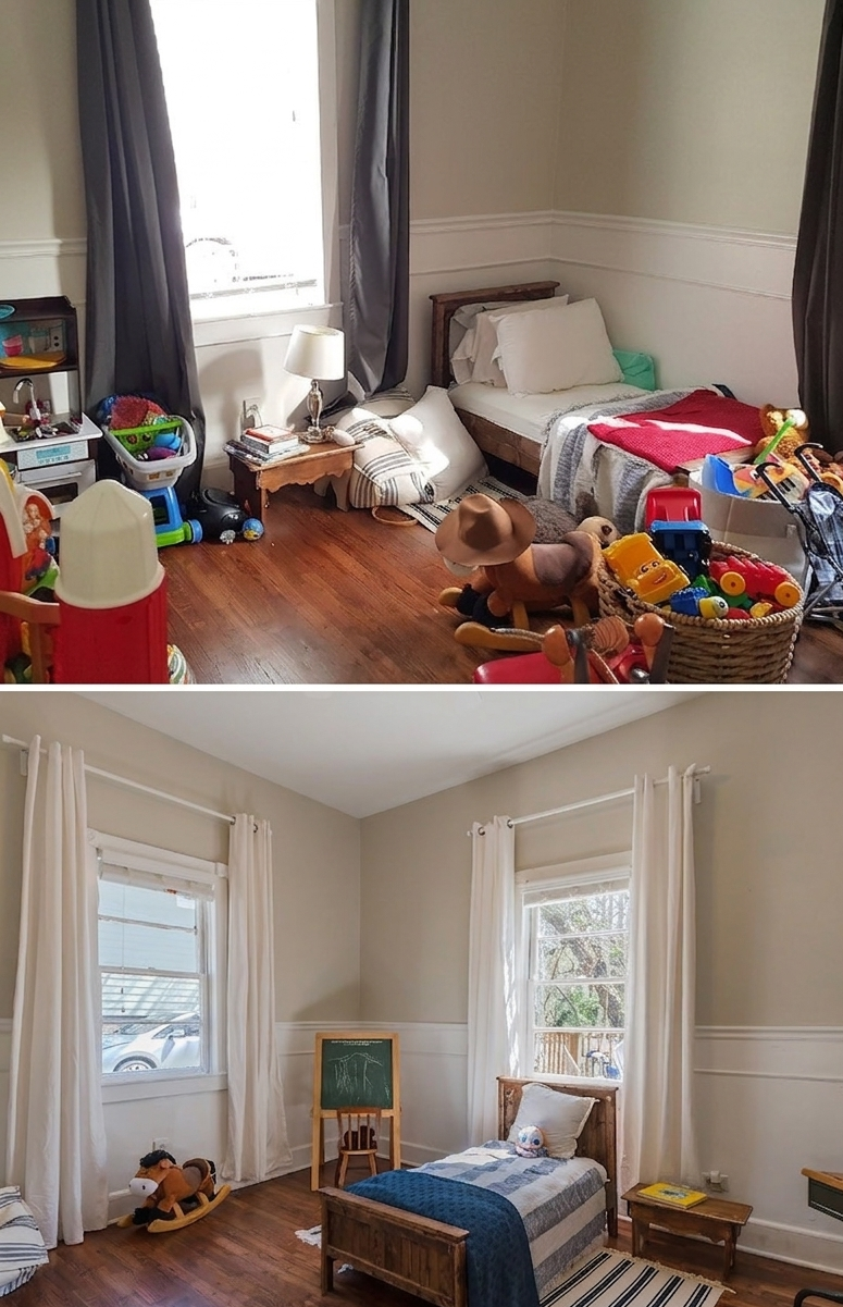 By Day 20, simple systems meant toys had a home, surfaces stayed clear, and this room went from constant stress to their favorite place to unwind.