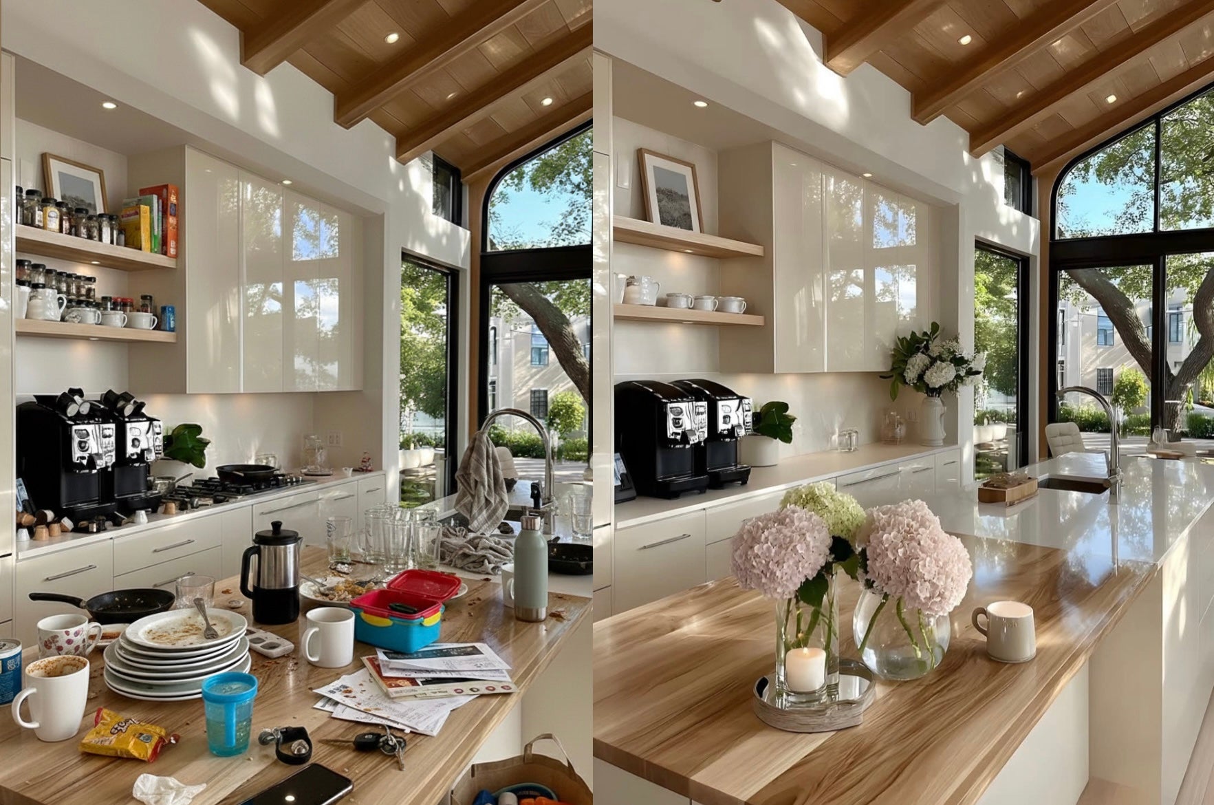 In the first 5 days, she cleared countertops and organized essentials so everything had its place.